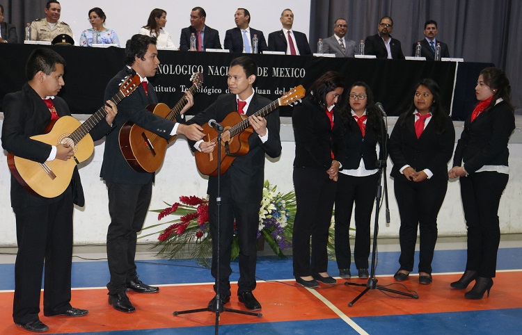 Tuvimos como integrantes del presidium a la rectora de la Universidad Tecnológica de San Juan del Río, representante personal del Gobernador Constitucional del Estado de Querétaro el M.V.Z Francisco Domínguez la Maestra en Administración Pública Bibiana Rodríguez Montes; la representante personal del Presidente Municipal Lic. Guillermo Vega Guerrero, Regidora de la Comision DE Educación y Cultura de San Juan del Río, Maestra Judith Ortiz Monroy; el Diputado Local por el IX Distrito de la LVIII Quincuagésima octava Legislatura del Estado de Qro. Roberto Cabrera Valencia; el Coordinador General de la Universidad Autónoma de Querétaro Campus San Juan del Río, al Dr. Juan Primo Benítez Rangel; el Teniente Coronel del Arma Blindada Diplomado de Estado Mayor Lázaro Morales Bello; el Secretario de la Delegación Sindical D-V-82 Sección 61 del SNTE el Ing. Juan Manuel Rodríguez Zamora. el Vicepresidente de Capacitación de la Cámara Nacional de Comercio de San Juan del Río, el Ing. Roberto Espinosa Gutiérrez; el consejero de la Cámara Nacional de la Industria de la Transformación de San Juan del Rio, el Lic. Andres Mares Urrutia; el Representante del Presidente de la Asociación de Industriales de San Juan del Río, Ing. Héctor Manuel Rivadeneira Díaz el Lic. Tomás Galvan; el Presidente del Comite Ejecutivo de la Sociedad de Alumnos del Instituto Tecnológico de San Juan del Río el C. Jose Juan Hernández Arteaga y el Director del Instituto Tecnológico de San Juan del Río el Dr. Guillermo De Anda Rodriguez.