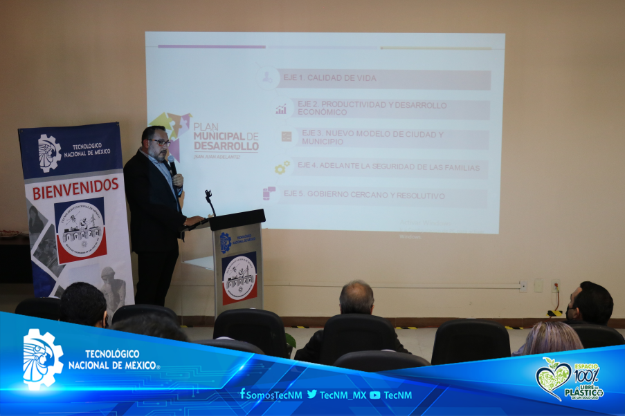 Como anfitrión del evento, el Ing. José Pedro Fuentes González Director del Instituto Tecnológico de San Juan del Río ofreció palabras de bienvenida, recalcó que es importante conocer que se va a ser en los próximos años en nuestro municipio y saber cómo nuestra institución puede ser participe en el proceso de desarrollo de la mano de nuestra comunidad estudiantil.