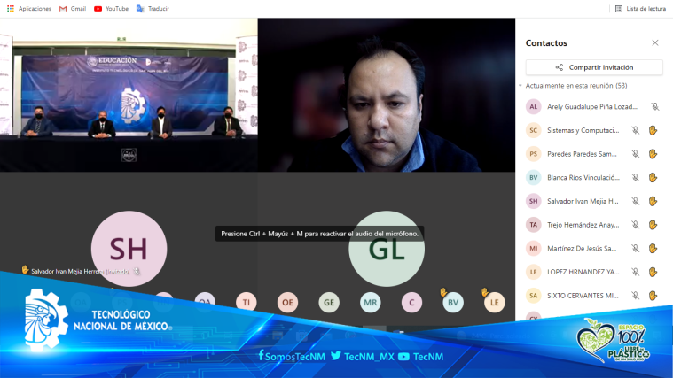 En su discurso, el Director les dio una cordial bienvenida a la comunidad tecnológica a todos los estudiantes que estarán cursando su primer semestre en nuestra institución, comentando que el día 24 de enero se tuvo que iniciar de manera virtual, se tenía toda la intensión de regresar de manera presencial, pero por la nueva variante delta del covid-19 que es mucho más contagiosa, por esas razones es que no fue posible. Remarcó que El Tecnológico Nacional de México, es la institución más grande del país que forma a más del 40% de los ingenieros que egresan anualmente de las diferentes escuelas del país, les agradeció su confianza en esta institución en su campus San Juan del Río.
