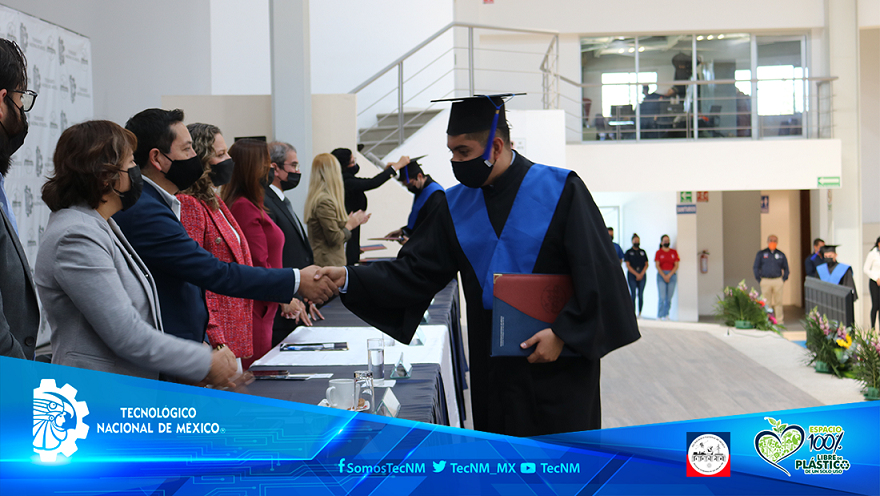 Durante su intervención, José Pedro fuentes compartió el mensaje de Ramón Jiménez López, Director General del TecNM enviando un cordial saludo y felicitando a todos los egresados, deseando el mayor de todos los éxitos, enviando un saludo también a todos los presentes. El Ing. José Pedro agradeció la presencia de cada uno de los integrantes del presídium, personal docente, administrativo y de apoyo, así como también a los padres e invitados de los egresados; comentó que esta generación de egresados ha tenido que sobrellevar y superar por más de dos años la pandemia de COVID-19 que ha dejado muchas secuelas de dolor, sufriendo estragos de la misma. Ya que la pandemia los obligó a adaptarse de un día para otro con la educación a distancia para que se siguieran preparando en sus clases, logrando que con su esfuerzo y perseverancia pudieran concluir con éxito sus estudios de ingeniería. Para concluir con su participación pidió agradecer a sus padres por el apoyo y los alentó a los egresados a alcanzar sus metas y ser parte de las historias de éxito que tiene el Instituto.