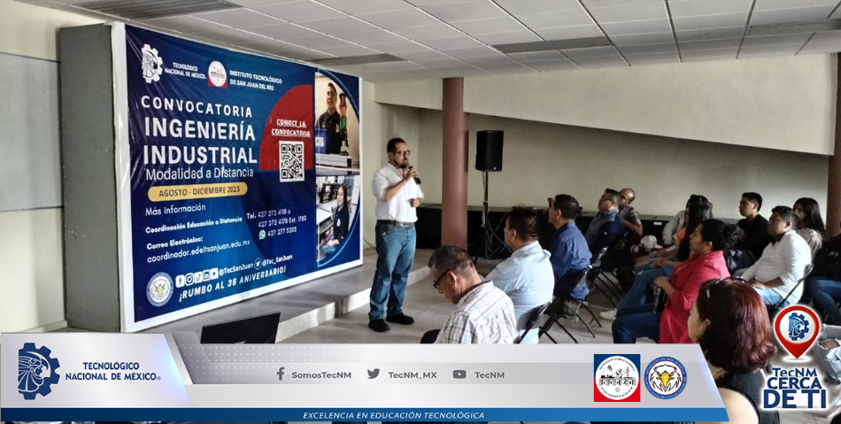 Rubén Espinosa Castro dirigió el evento de promoción de oferta educativa para la carrera de Ingeniería Industrial en Modalidad a Distancia mencionando que, con estas estrategias, se amplían las opciones de formación profesional para las y los jóvenes que viven en la sierra gorda queretana.