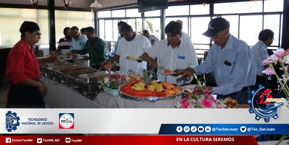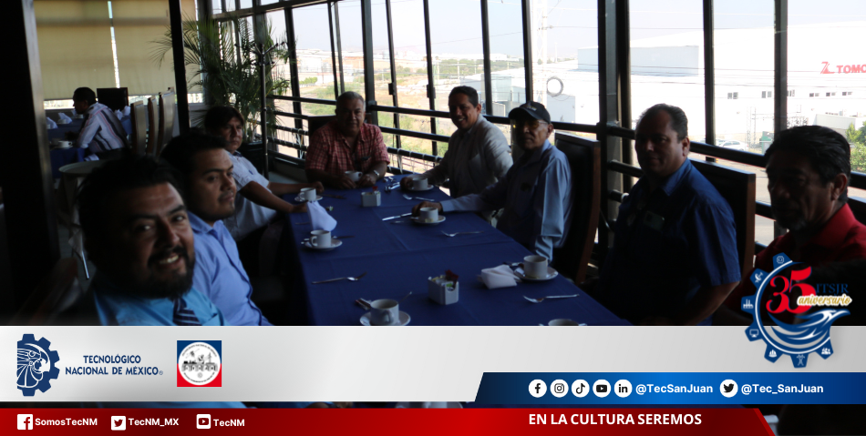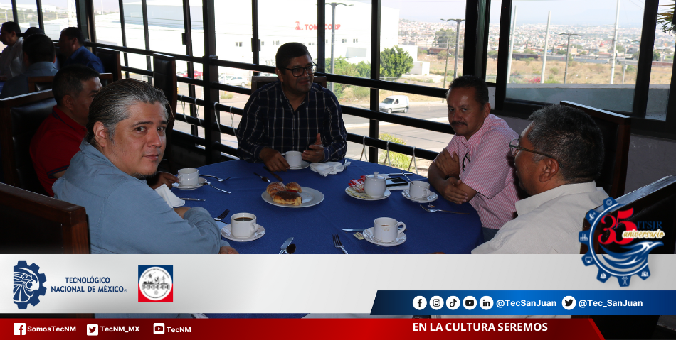 San Juan del Río, Qro. 16 de junio de 2023. El Instituto Tecnológico de San Juan del Río en coordinación con la Delegación Sindical D-V-83, realizaron el desayuno por el festejo del día del padre, en donde se tuvo la presencia del Raúl Campa Barrientos; Jefe de Recursos Humanos, María del Carmen Amézquita Ugalde; Subdirectora de Planeación y Vinculación, Amaury Torres Balcázar Secretario de Organización de la Delegación Sindical D-V-83, Gerardo Herrera Aguado; Subdirector Administrativo y de Servicios, Jaime Navarrete Damián; Subdirector Académico.