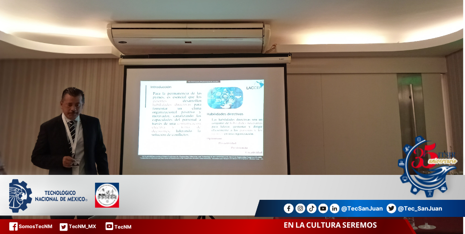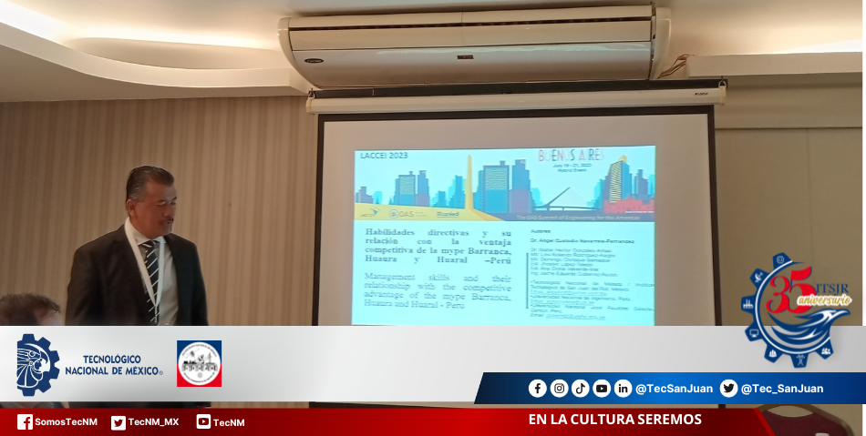 San Juan del Río, Qro. 01 de agosto de 2023, el docente Ángel Custodio Navarrete Fernández tuvo una participación como conferencista en la ciudad de Buenos Aires, Argentina. Destacando su aportación en el proyecto: MANAGEMENT SKILLS AND THEIR RELATIONSHIP WITH THE COMPETITIVE ADVANTAGE OF THE MYPES BARRANCA, HUAURA AND HUARAL.