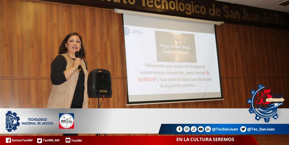 San Juan del Río, Qro. 09 de octubre de 2023. En el marco de la celebración del 35 aniversario del Instituto Tecnológico de San Juan del Río, se llevaron a cabo importantes actividades en el ámbito académico; se impartieron conferencias magistrales con temas de actualidad e interés para la comunidad tecnológica, teniendo como ponentes a importantes personalidades en el ámbito empresarial, que compartieron con las y los estudiantes sus experiencias de éxito y laborales.