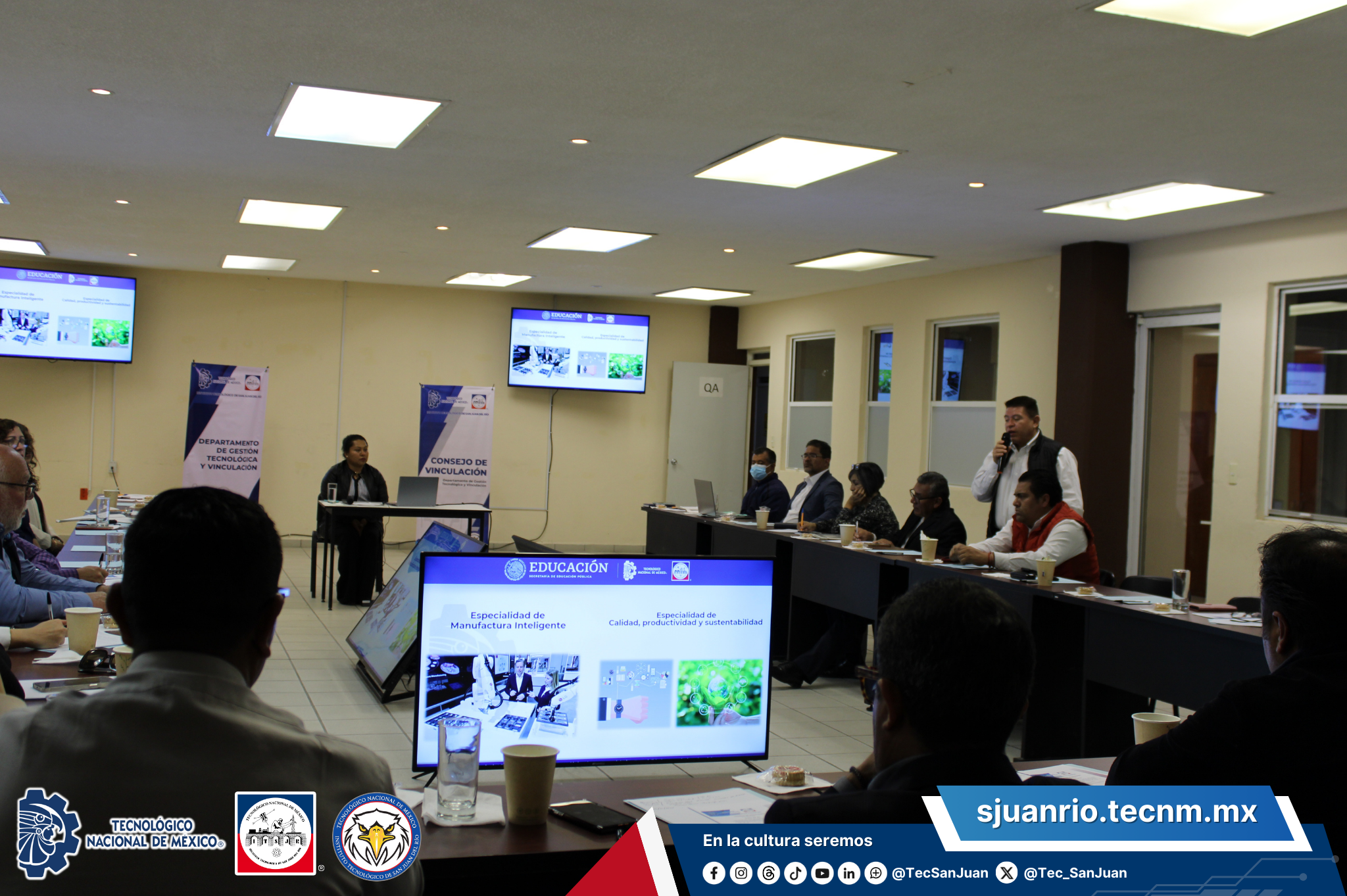 San Juan del Río, Qro. 15 de febrero del 2024, se realizó la Reunión de Consejo de Vinculación en las instalaciones del Instituto, donde se abordaron temas acerca de las actividades realizadas por nuestra institución durante el 2023 en materia académica y formación integral. Importante señalar el compromiso del área industrial del municipio a través de Manuel Rivadeneyra Díaz, presidente de la CANACINTRA quien participó en la sesión del consejo e hizo algunos aportes acerca de cómo el Instituto ha procurado la inserción de estudiantes de las diferentes carreras en semestres más tempranos en las empresas, e identificando las áreas de oportunidad de nuestra institución para un exitoso programa de vinculación con las empresas instaladas en el municipio.