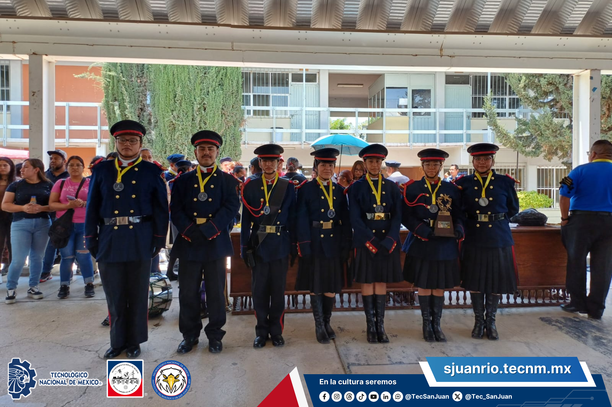 San Juan del Río, Qro., a 04 de mayo del 2024. Con gran entusiasmo y orgullo, el Instituto Tecnológico de San Juan del Río celebra el triunfo de sus estudiantes en el Circuito Cívico Municipal de Escoltas de Bandera y Bandas de Guerra 2024. En la categoría de Escoltas de Bandera de nivel superior, nuestros estudiantes demostraron su disciplina, gallardía y compromiso, obteniendo el primer lugar.