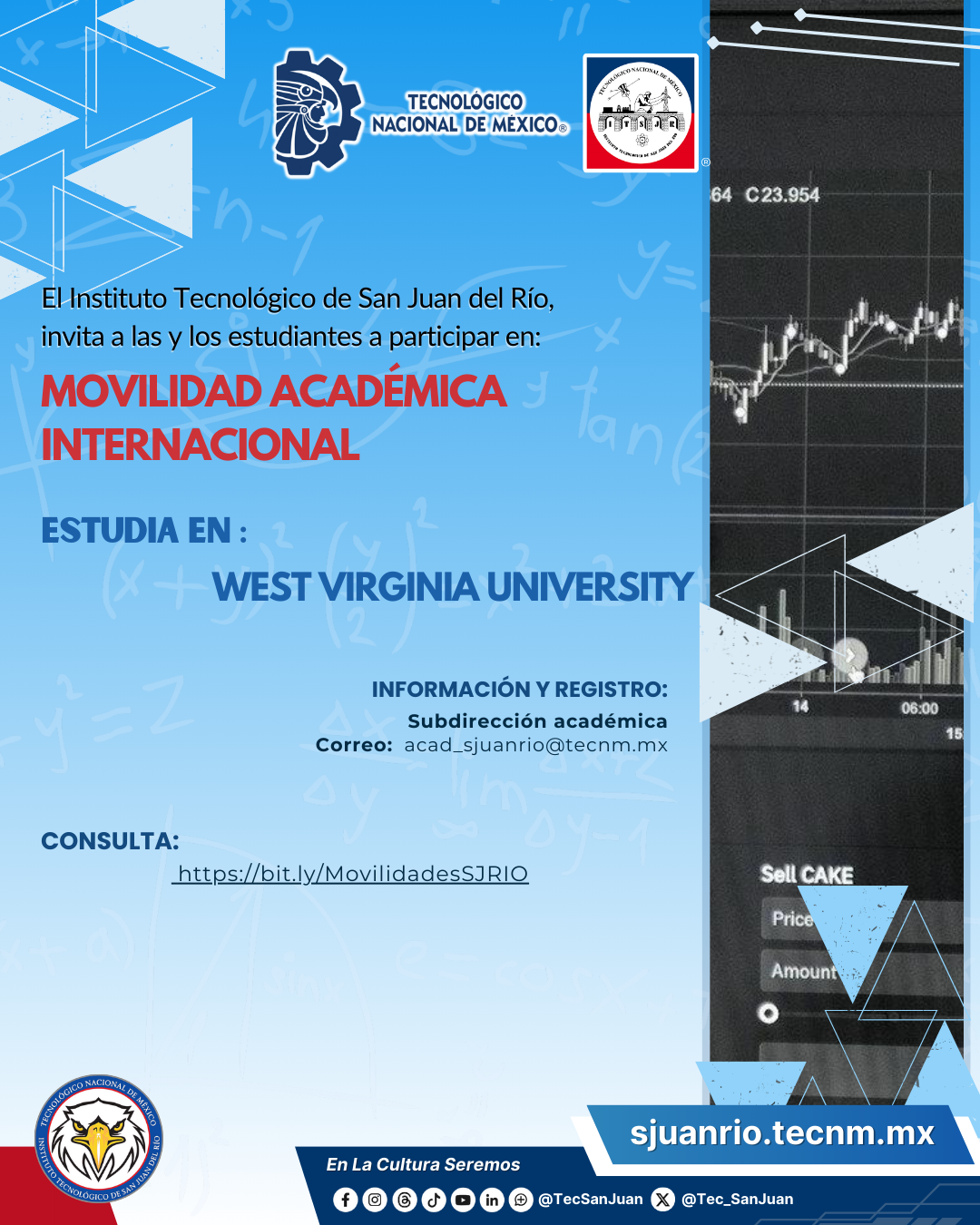 Para más información acudir al Departamento de Gestión Tecnológica y Vinculación o al correo electrónico institucional: Esta dirección de correo electrónico está siendo protegida contra los robots de spam. Necesita tener JavaScript habilitado para poder verlo.