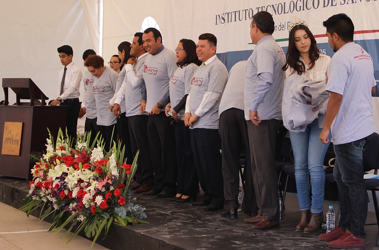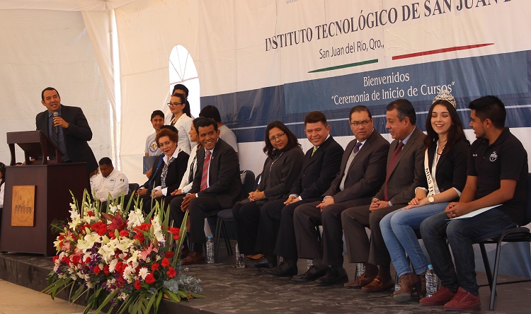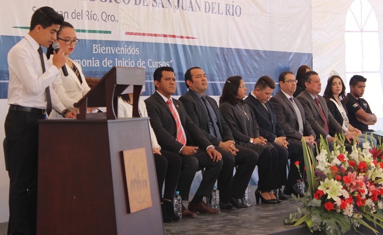 El Subdirector de Servicios Adminsitrativos del Tecnológico de San Juan del Río, el ING: HUGO FERNANDO HERNÁNDEZ, el Diputado Local por el IX Distrito de la LVIII Legislatura del Estado de Querétaro, el DIP. ROBERTO CABRERA VALENCIA; la Secretaria General de la Delegación D-V-83 de la Sección 61 del Sindicato Nacional de Trabajadores de la Educación, la Maestra en Administración MARÍA REYNA CERVANTES GALVÁN; el Presidente del Honorable Consejo Estudiantil del Instituto, el C. FRANCISCO MORALES TAPIA; la representante de la Belleza Tecnológica, la Srita. ANA VIOLETA RAMÍREZ MARTÍNEZ y el anfitrión de este evento el Subdirector Académico del Instituto Tecnológico de San Juan del Río, el M.C. ÁNGEL ADAD FRANCO BALTAZAR.