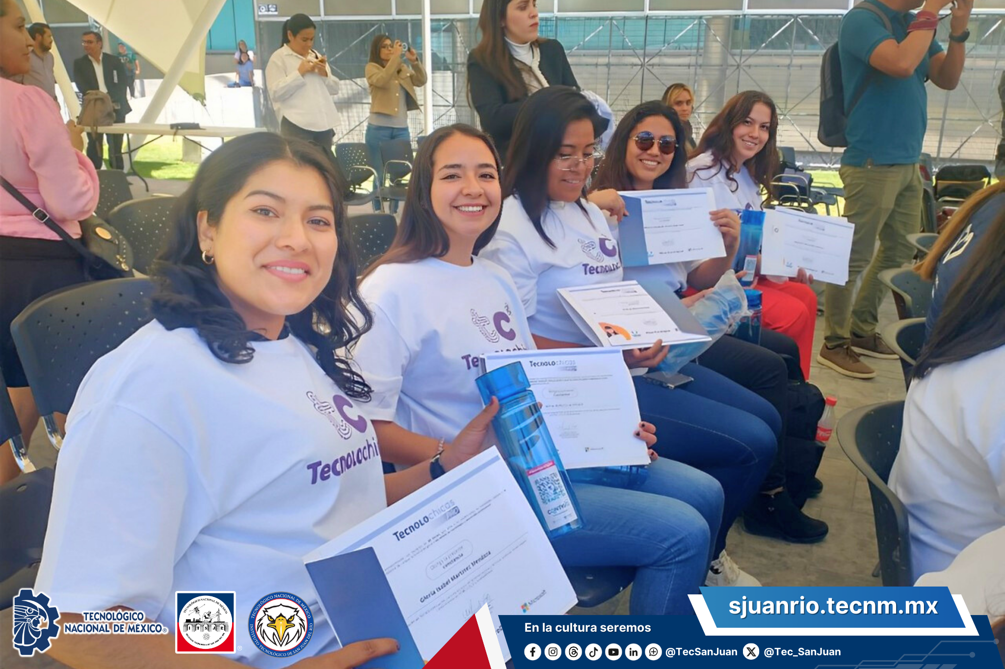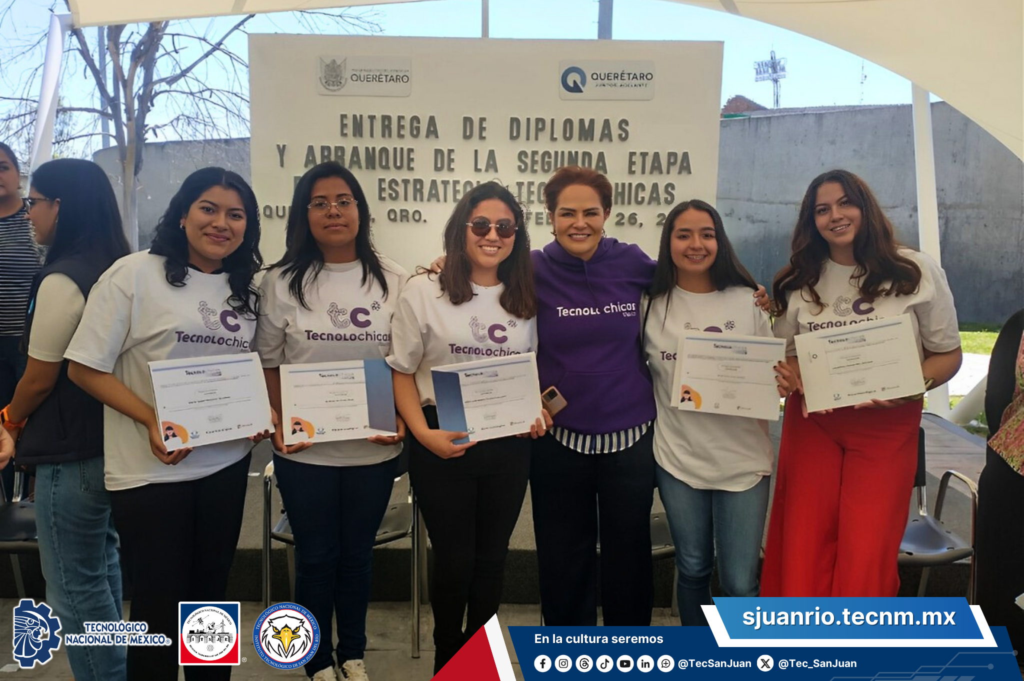 San Juan del Río, Qro., a 27 de febrero del 2024, en un evento realizado en las Instalaciones del Centro Educativo y Cultural del estado de Querétaro, "Manuel Gómez Morín", se realizo la entrega de diplomas a estudiantes de la carrera de Ingeniería en Tecnologías de la Información y Comunicaciones e Ingeniería en Sistemas Computacionales, quienes participaron en el programa de cursos Tecnolochicas, programa de Fundación Televisa de la mano de Microsoft con para impulsar e inspirar a niñas, adolescentes y mujeres en la tecnología.