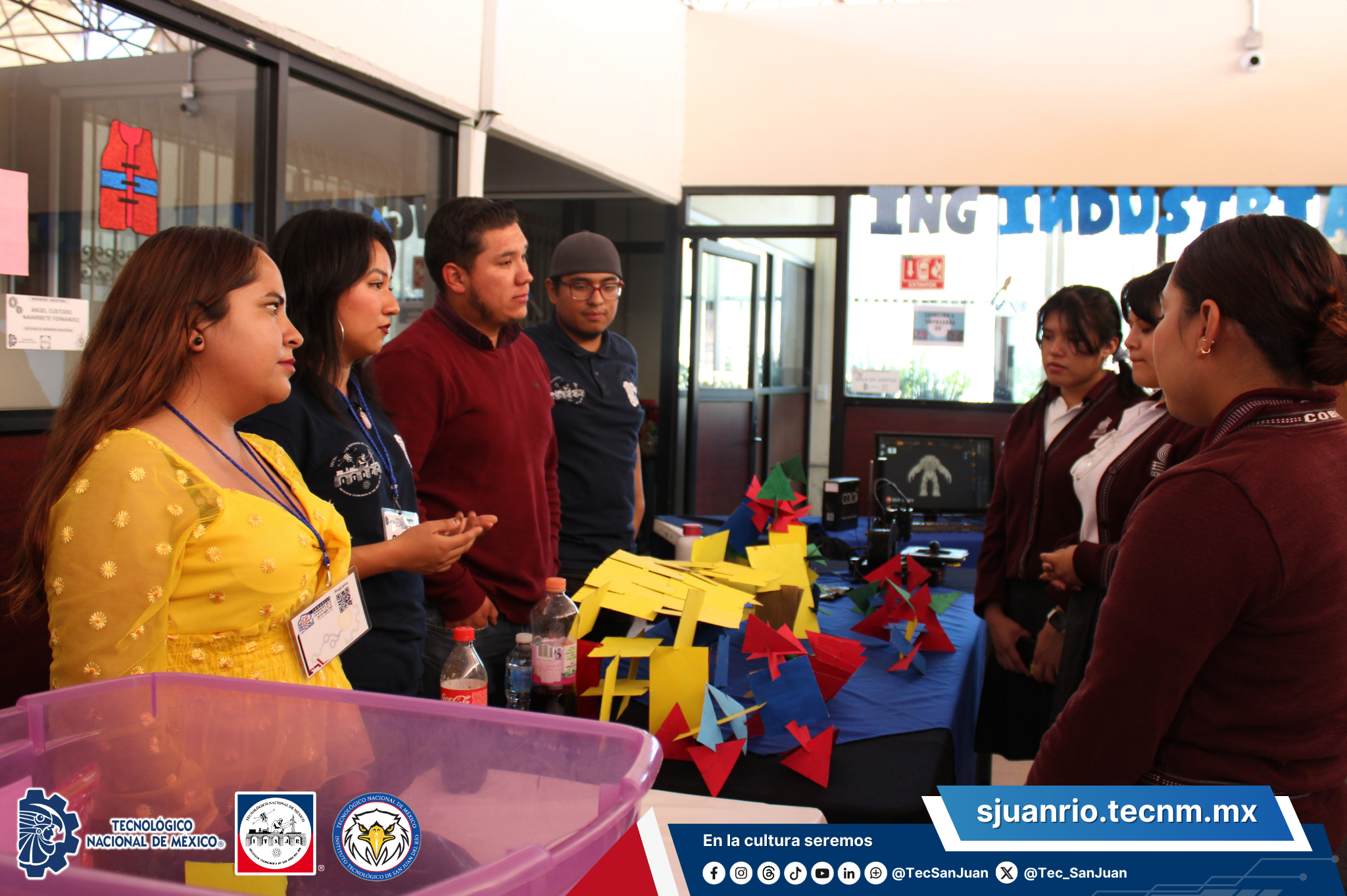San Juan del Río, Qro., El pasado 28, 29 de febrero y 1 de marzo del 2024, se realizó con éxito la ExpoTec 2024, con el objetivo de dar a conocer la oferta educativa del Instituto Tecnológico de San Juan del Río y apoyar en la toma de decisiones, de acuerdo a los intereses, habilidades y aptitudes de las y los estudiantes de Instituciones de Educación Media Superior. Se contó con la participación de CECYTEQ plantel Pedro Escobedo, San Juan del Río y Paso de Mata, COBAQ plantel 10, 18 y 20, CETIS 142, IPIC, CBTIS NO. 145 y CONALEP plantel San Juan del Río.